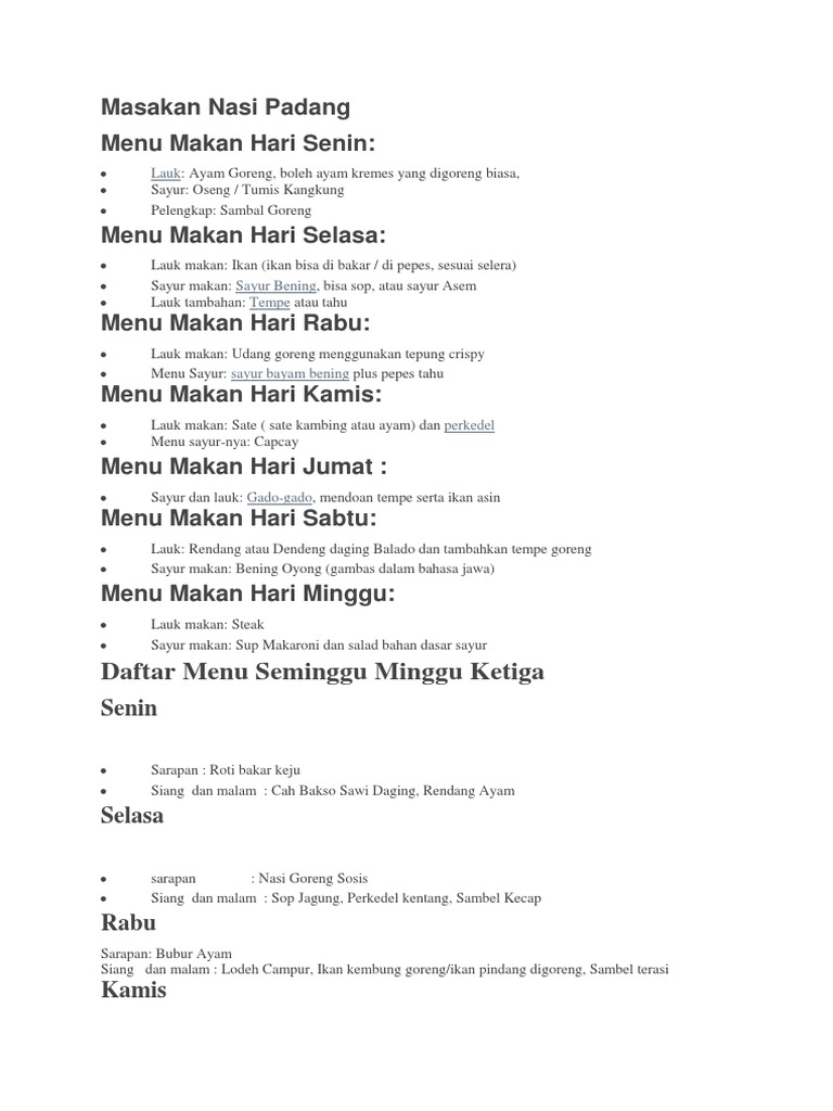Masakan Nasi Padang Menu Makan Hari Senin Daftar Menu Seminggu Minggu Ketiga