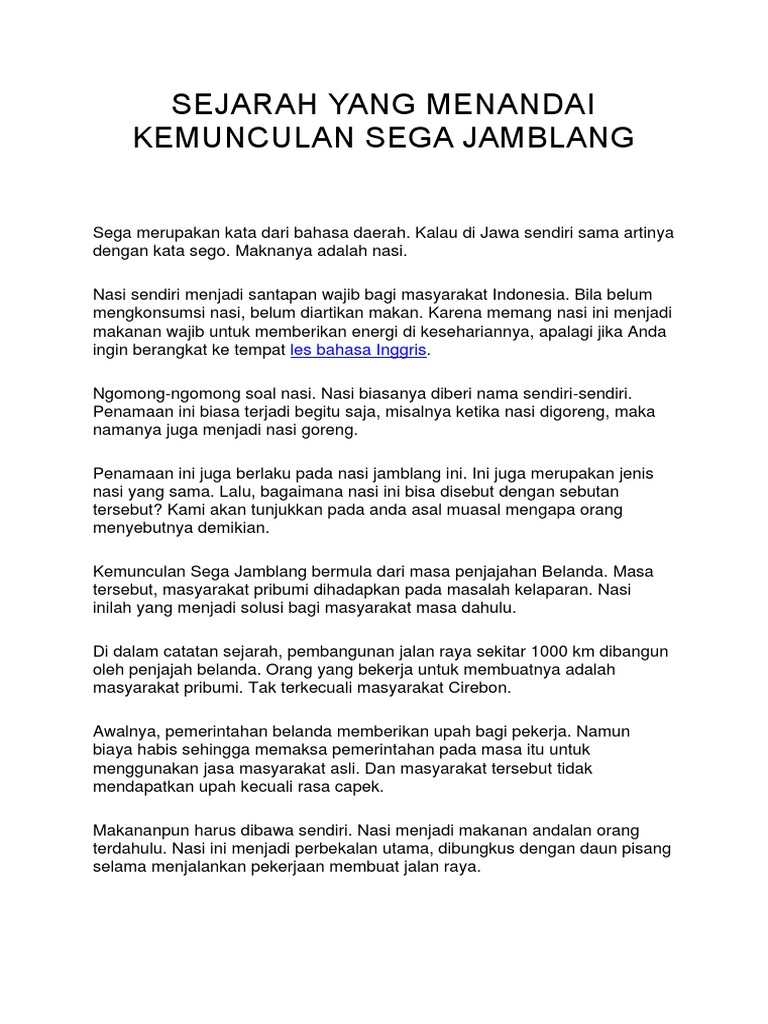 Sejarah Yang Menandai Kemunculan Sega Jamblang Apa Itu Semua Informasi Tentang Apa Sih