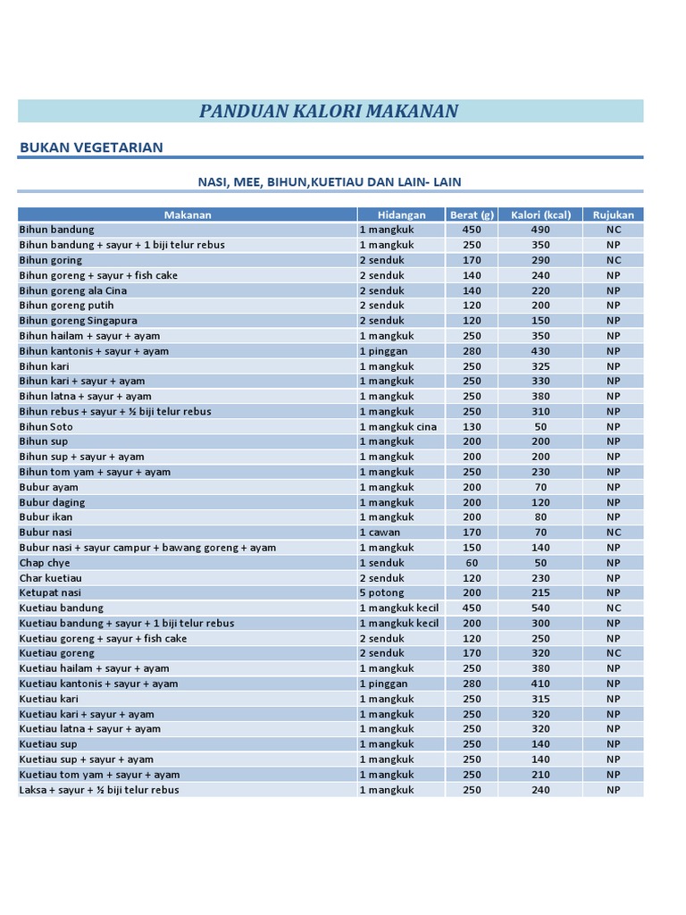 Senarai Kalori Makanan 25 Makanan Yang Selalu Dimakan Ceriasihat